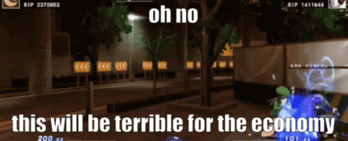 Paglalarawan ng Content: a screenshot of a video game with the words oh no this will be terrible for the economy