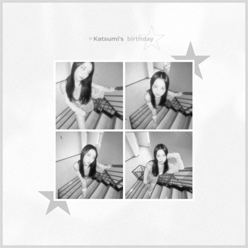 Paglalarawan ng Content: a black and white photo of a woman with katsumi 's birthday written on the top