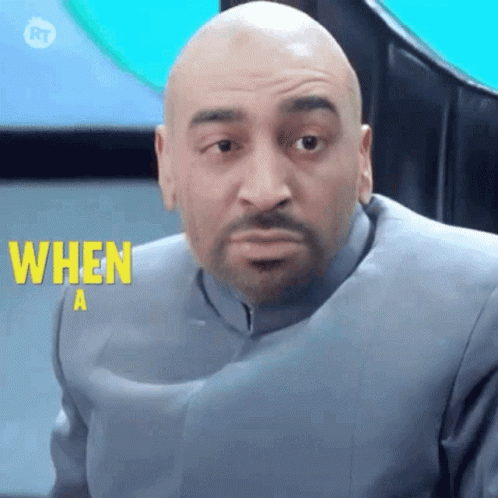 Paglalarawan ng Content: a bald man with a beard is wearing a grey suit and says when a