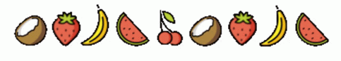 Description du contenu: a row of fruit including strawberries bananas cherries and watermelons