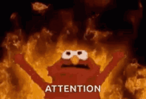Description du contenu: elmo from sesame street is standing in front of a fire with the words attention written on it .