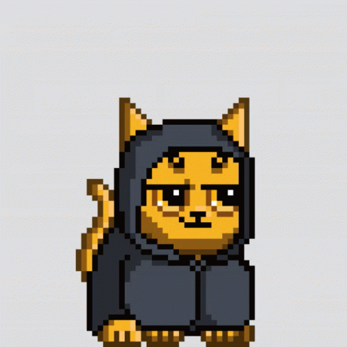 Description du contenu: pixel art of a dog wearing a black hoodie