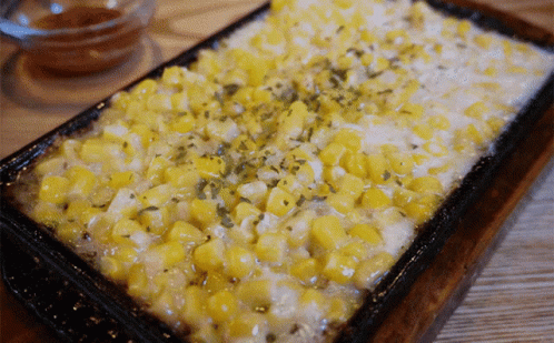 ការពណ៌នាអំពីខ្លឹមសារ: a tray of corn and cheese on a table
