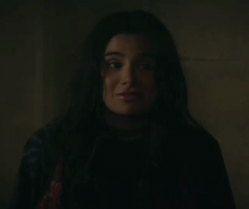 콘텐츠 설명: a woman is smiling in a dark room while wearing a black jacket .