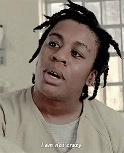 콘텐츠 설명: a man with dreadlocks is talking and saying `` i am not crazy . ''