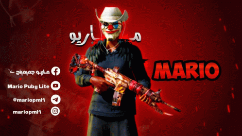 კონტენტის აღწერა: a man with a clown mask and a cowboy hat is holding a gun and the name mario is above him