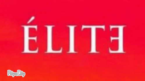 კონტენტის აღწერა: a red background with white letters that say elite