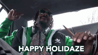 Контент сипаттамасы: snoop dogg is sitting in the back seat of a car with his hands in the air and says `` happy holiday '' .