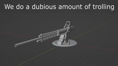 Контент сипаттамасы: a 3d model of a cannon with the words we do a dubious amount of trolling below it