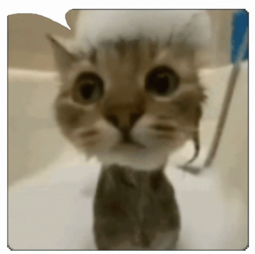 Контент сипаттамасы: a cat is taking a bath with a bubble on its head