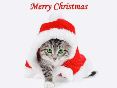 Контент сипаттамасы: a cat wearing a santa hat with the words merry christmas on the bottom