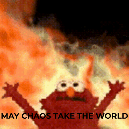 Контент сипаттамасы: elmo is surrounded by flames with the words may chaos take the world