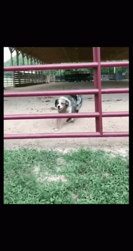Контент сипаттамасы: a dog is running through a red fence in a field
