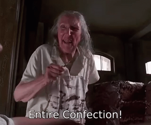 Контент сипаттамасы: an elderly woman is sitting in a chair with the words " entire confection " written below her