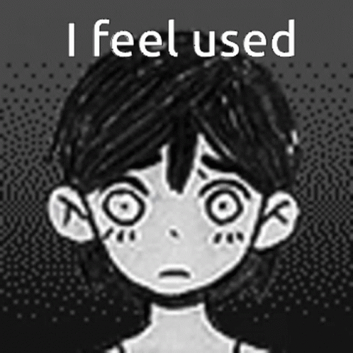 Контент сипаттамасы: a black and white drawing of a girl with the words " i feel used " below her
