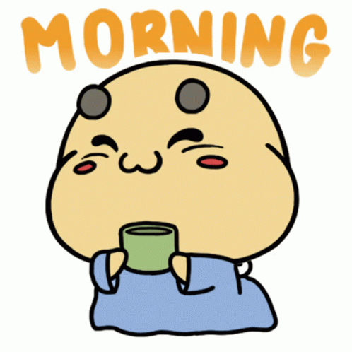 Контент тууралуу учкай маалымат: a cartoon character is holding a cup of coffee and the word morning is on the bottom