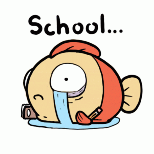 कॉन्टेंट की जानकारी: a cartoon fish with a pencil in its mouth is crying with the words school below it