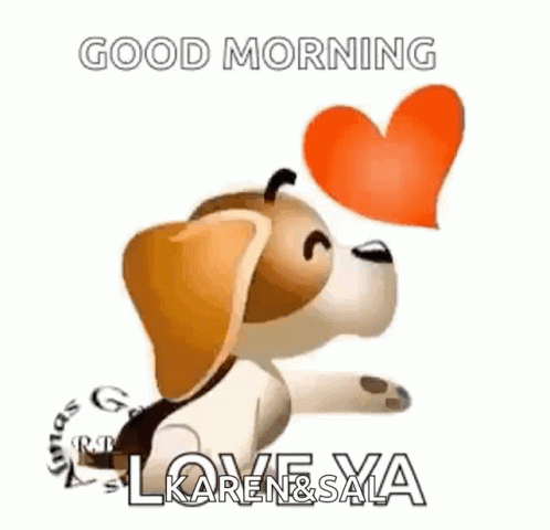कॉन्टेंट की जानकारी: a cartoon dog is blowing a heart in the air and saying `` good morning '' .