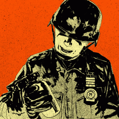 कॉन्टेंट की जानकारी: a black and white drawing of a police officer holding a bottle