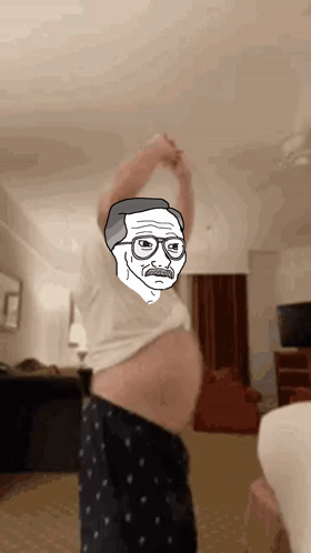 Opis sadržaja: a cartoon of a man with glasses and a mustache is on the back of a man 's shirt