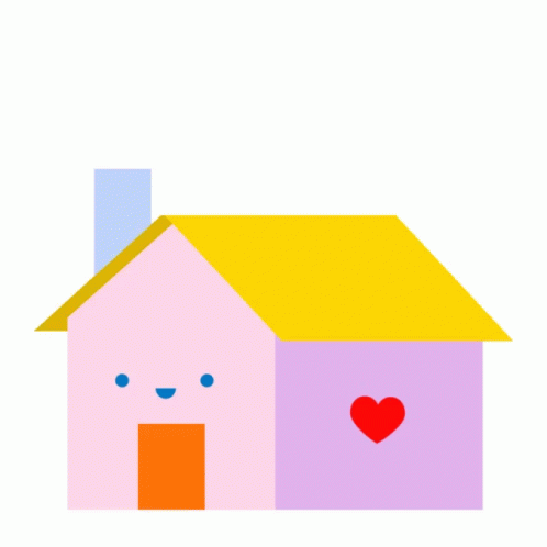 Tartalomleírás: a colorful house with a rainbow chimney and a heart on the side