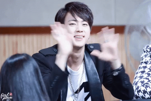Բովանդակության նկարագրություն: a young man applauds while wearing a black jacket and a white shirt with a black star on it