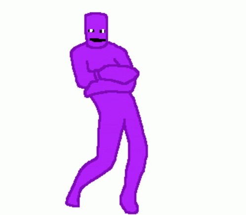 Բովանդակության նկարագրություն: a pixel art drawing of a purple man dancing on a white background