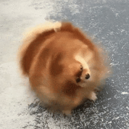 Lýsing á efni: a pomeranian dog standing on a concrete surface