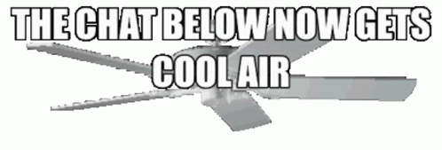 Lýsing á efni: a ceiling fan with the words " the chat below now gets cool air " above it