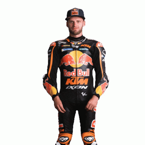 Descrizione dei contenuti: a man wearing a red bull motorcycle suit