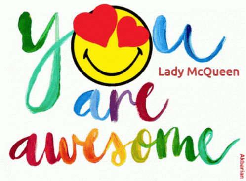 Descrizione dei contenuti: a lady mcqueen poster with a colorful smiley face and the words you are awesome