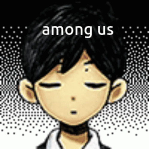 Descrizione dei contenuti: a cartoon of a boy with his eyes closed and the words `` among us '' written on the bottom .