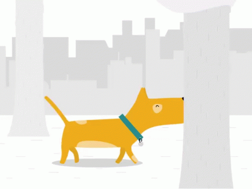Descrizione dei contenuti: a yellow dog with a blue collar is sniffing a tree in a park