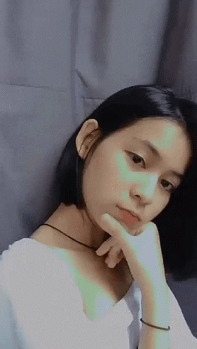 Descrizione dei contenuti: a girl with short hair is taking a selfie with her hand to her chin