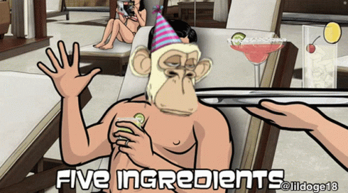 Descrizione dei contenuti: a cartoon of a monkey holding a lime with the words five ingredients on the bottom