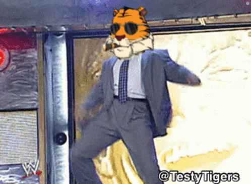 ຄຳອະທິບາຍເນື້ອຫາ: a cartoon of a man with a tiger head on his head