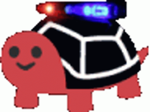 ຄຳອະທິບາຍເນື້ອຫາ: a red turtle with a police light on its back is standing on a white background .
