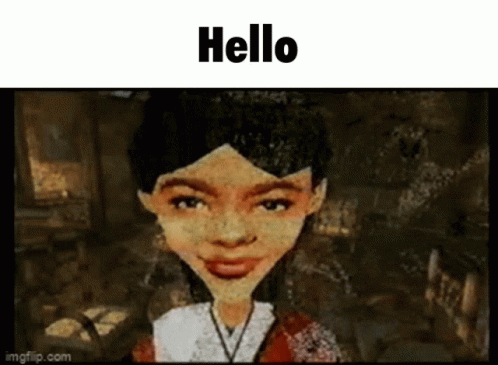 ຄຳອະທິບາຍເນື້ອຫາ: a cartoon of a woman says hello in a video game
