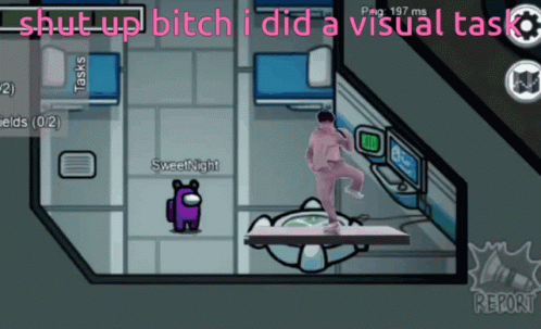 ຄຳອະທິບາຍເນື້ອຫາ: among us game that says " shut up bitch i did a visual task " on top