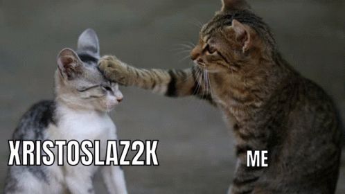 ຄຳອະທິບາຍເນື້ອຫາ: a cat petting another cat 's head with the caption xristoslazz2k me