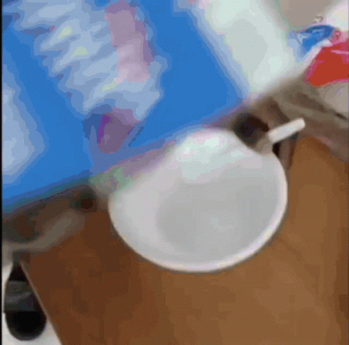ຄຳອະທິບາຍເນື້ອຫາ: a white bowl is sitting on a wooden table