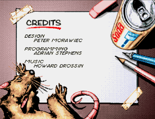 ຄຳອະທິບາຍເນື້ອຫາ: a can of soda sits next to a drawing of a rat and a sign that says credits
