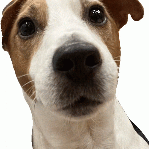 ຄຳອະທິບາຍເນື້ອຫາ: a brown and white dog is looking at the camera with a white background