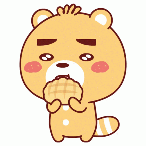 ຄຳອະທິບາຍເນື້ອຫາ: a cartoon drawing of a teddy bear holding a loaf of bread in its mouth