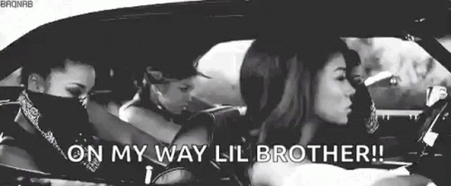 ຄຳອະທິບາຍເນື້ອຫາ: a group of women are sitting in a car and one of them is saying `` on my way lil brother ! ''