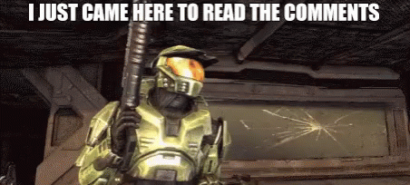ຄຳອະທິບາຍເນື້ອຫາ: a video game character is holding a gun and says i just came here to read the comments .