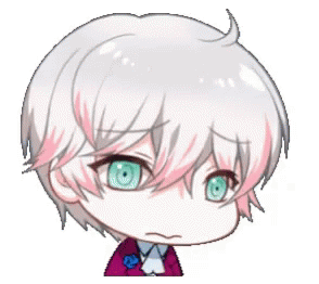 ຄຳອະທິບາຍເນື້ອຫາ: a chibi boy with gray hair and green eyes is crying .