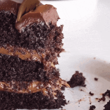 Turinio aprašas: a slice of chocolate cake on a white plate with a bite taken out of it