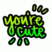 Turinio aprašas: a green and black logo that says `` you 're cute '' .