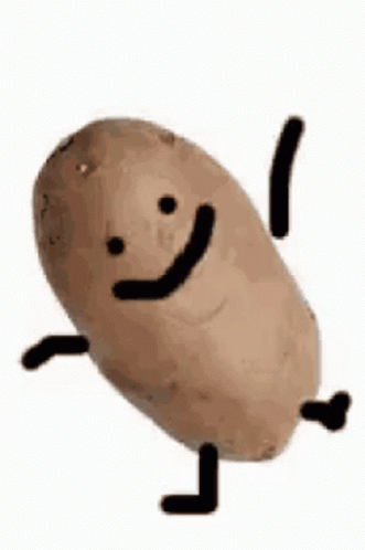 Turinio aprašas: a potato with a face and arms and legs is dancing .